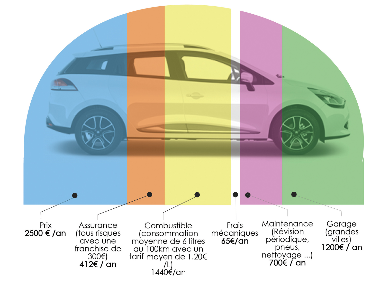 Alors que le coût annuel moyen d’un véhicule d'entreprise est estimé à 6300 €, la part des coûts fixes supportée par l'entreprise (achat du véhicule, assurance, perte de valeur, stationnement) est bien plus importante que les coûts variables (carburant, péages…).